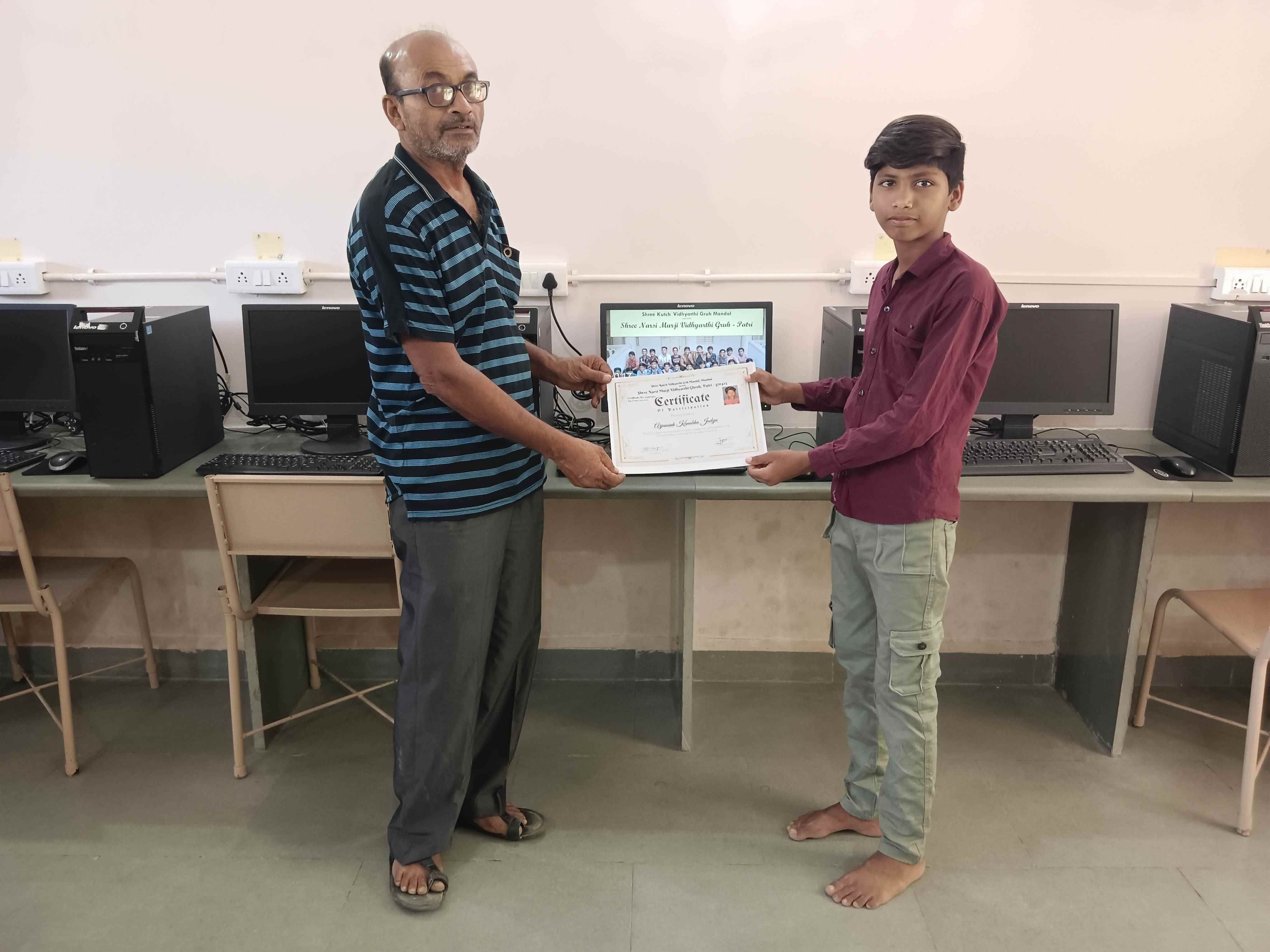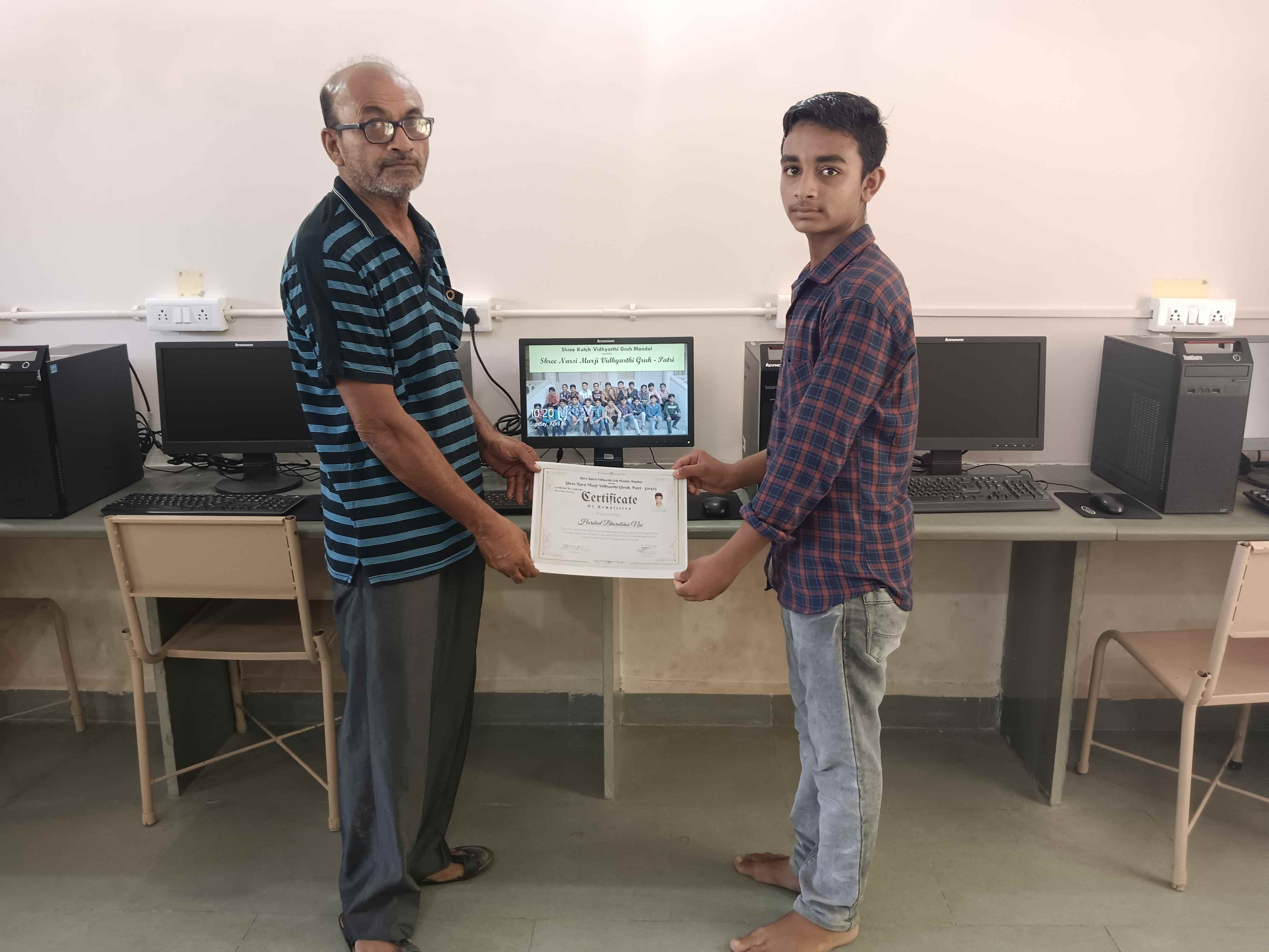 Two students stood out for their outstanding achievements - Chirag Joshi and Harshad Limbachiya. These students went above and beyond in completing their coursework, and were also the first in extracurricular activities. They showed a great interest in learning beyond the course, mastering basic hardware maintenance, disassembling a computer case, and becoming proficient in data entry operations, printing, and remote connections software.