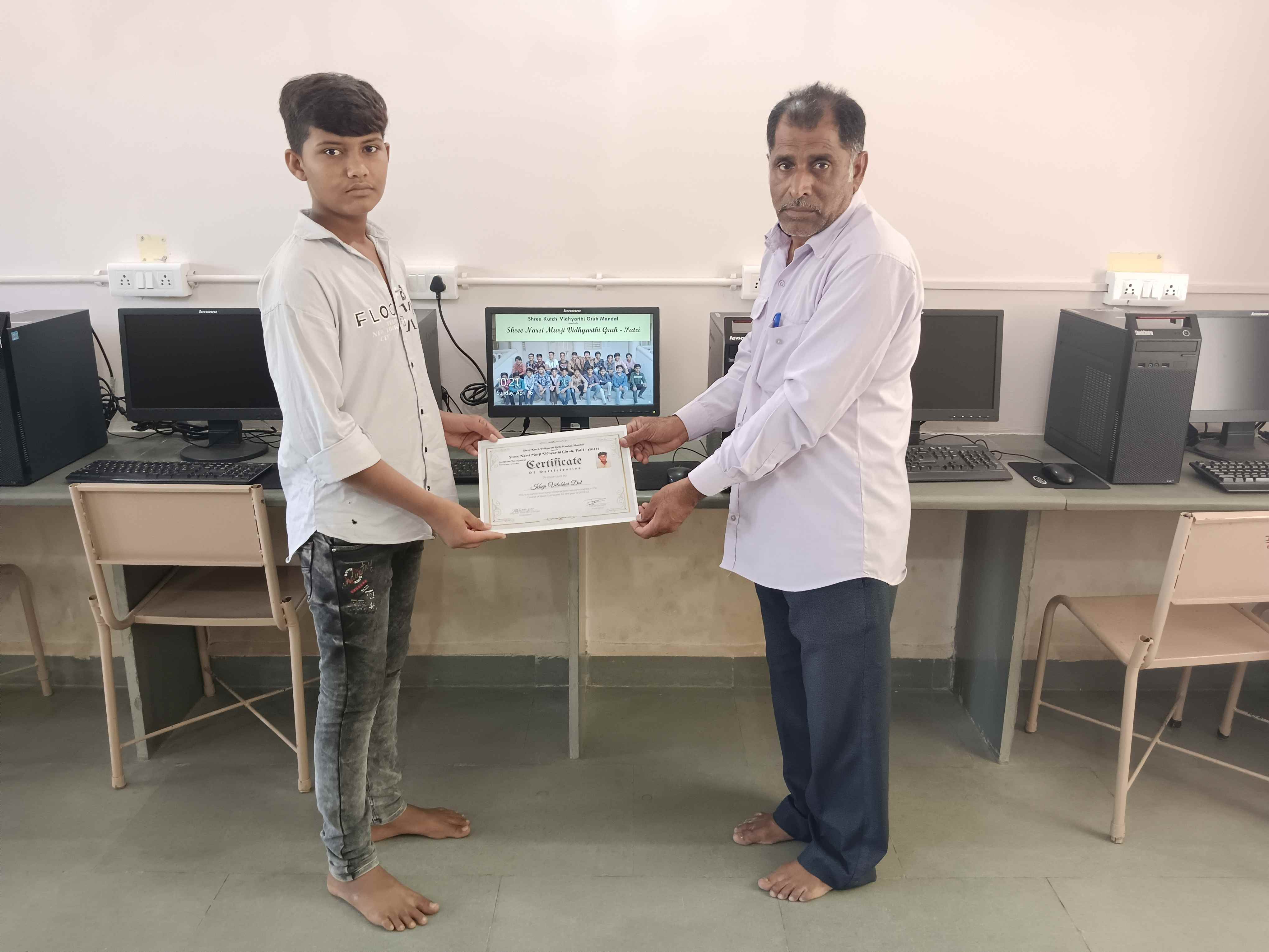 On 16th April 2023, the Narsi Murji Hostel in the village of Patri was abuzz with excitement as the computer class of 2022-23 held their certification ceremony. The event, organized by the computer tutor, was attended by the chief guest Ramesh Anadji Gogri and headmaster Jaymal Makwana.
